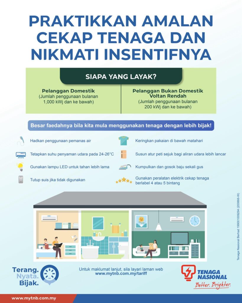 Amalkan gaya hidup cekap tenaga dengan langkah mudah seperti guna lampu LED, tetapkan suhu penghawa dingin 24–26°C dan tutup suis bila tidak digunakan.