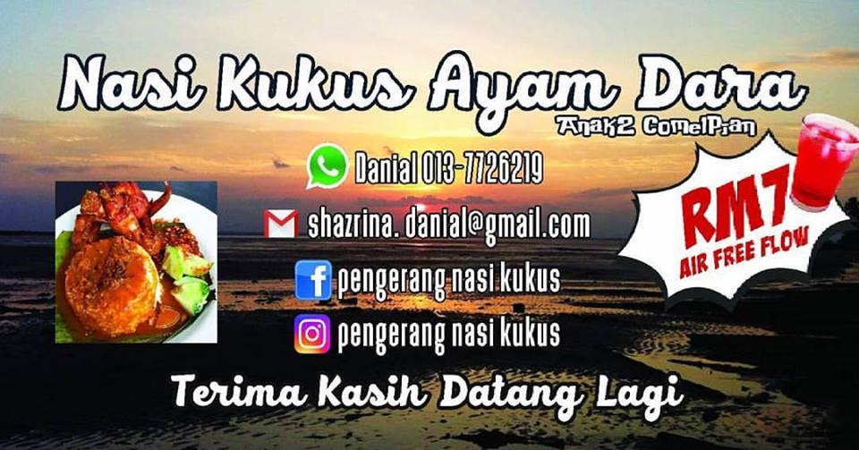 NASI KUKUS AYAM DARA PENGERANG PASTI CUBA ! 9 Mei 2017 – Telah mencuba nasi kukus terletak di depan masjid ar-raudhah, Pengerang? Anda jangan lepaskan peluang ini. Harganya berpatutan kepada semua golongan masyarakat. Anda boleh membuat pesanan melalui whatsapp, facebook dan juga instagram. Hubungi nombor telefon yang diberikan di bawah : 013-7726219 / Pn. Shazrina
