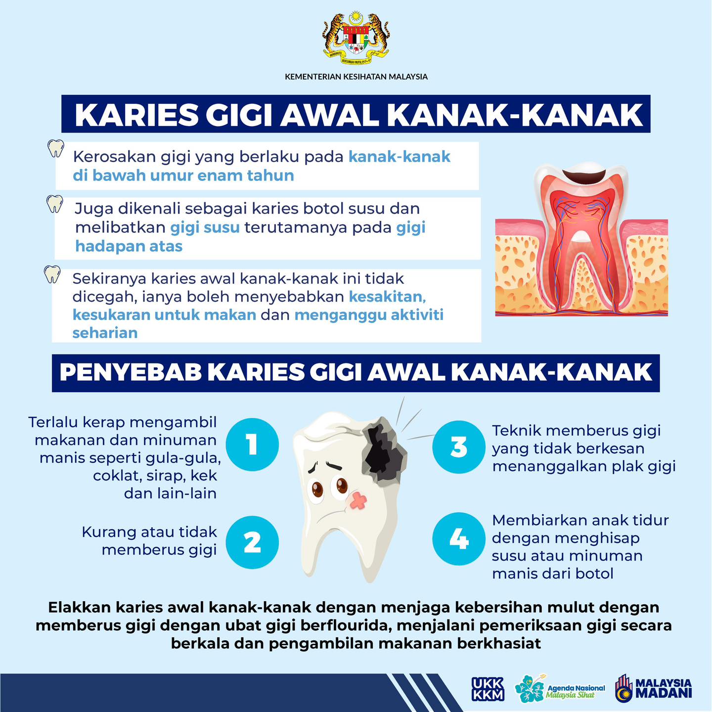 ? Tingkatkan pengetahuan mengenai karies gigi awal kanak-kanak dan penyebabnya bagi mengelakkan komplikasi ke atas kesihatan mulut anak anda. #KKMPrihatin #KKMSihat #MalaysiaMadani
